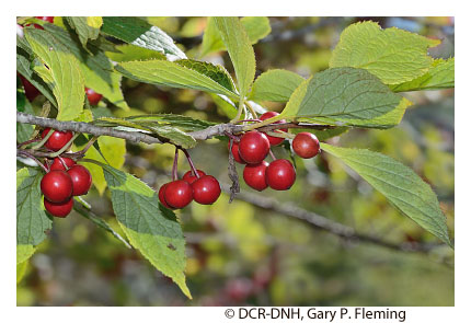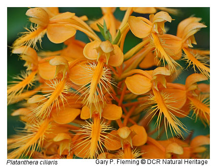 Bog vegetation is frequently a mosaic of tree or shrub patches and herbaceous openings. Several compositional variants associated with geography and elevation have been documented in Virginia. Species common to most variants include great rhododendron (Rhododendron maximum), Catawba rhododendron (Rhododendron catawbiense), silky willow (Salix sericea), smooth alder (Alnus serrulata), cinnamon fern (Osmundastrum cinnamomeum), tawny cottongrass (Eriophorum virginicum), prickly bog sedge (Carex atlantica), Fraser's marsh St. Johns-wort (Triadenum fraseri) , and brownish beaksedge (Rhynchospora capitellata). Species more restricted to low-elevation (below 900 m [3000 ft]) bogs of the Ridge and Valley and Cumberland Mountains include pitch pine (Pinus rigida), round-leaved sundew (Drosera rotundifolia ), bushy bluestem (Andropogon glomeratus), tussock sedge (Carex stricta), tuberous grass-pink (Calopogon tuberosus var. tuberosus), yellow fringed orchid (Platanthera ciliaris), and Nuttall's reed-grass (Calamagrostis coarctata). Species more restricted to higher-elevation (mostly above 900 m [3000 ft]) bogs of the southern Blue Ridge, Allegheny Mountains, and/or the highest mountains of the Ridge and Valley include stunted red spruce (Picea rubens), long-stalked holly (Ilex collina), northern wild raisin (Viburnum cassinoides), Carolina laurel (Kalmia carolina), cranberry (Vaccinium macrocarpon), rough-leaved goldenrod (Solidago patula), Cuthbert's turtlehead (Chelone cuthbertii), bog goldenrod (Solidago uliginosa var. uliginosa), star sedge (Carex echinata ssp. echinata), narrow-leaf bur-reed (Sparganium acaule), bog willow-herb (Epilobium leptophyllum), narrow-panicled rush (Juncus brevicaudatus), three-seeded sedge (Carex trisperma), Ruth's sedge (Carex ruthii), and thyme-leaf bluets (Houstonia serpyllifolia).