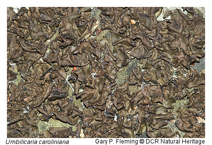 غالبًا ما تدعم الوجوه الصخرية الضخمة المحمية والمظللة والمبللة بشكل دوري مستعمرات كبيرة من الأشنات السرة "ثلاثية الصخور" أومبيليكاريا مامولاتا، وهي واحدة من أكبر الأشنات في فرجينيا. قد توجد أيضاً أشنات سُرِّيّة أخرى وأشنات فوليوزية متسامحة مع الظل مثل فلافوبارميليا بالتيمورنسيس والعديد من الأشنات القشرية.