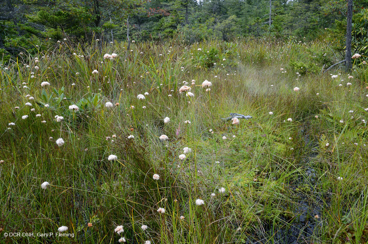 فتحة عشبية في مستنقع مانز، عند منابع ليتل ستوني كريك على المنحدر العلوي لجبل بوتس في مقاطعة جايلز. برية بحيرة الجبل، منطقة الحارس الشرقي، غابات جورج واشنطن & جيفرسون الوطنية. © DCR-DNH، غاري ب. فليمنج