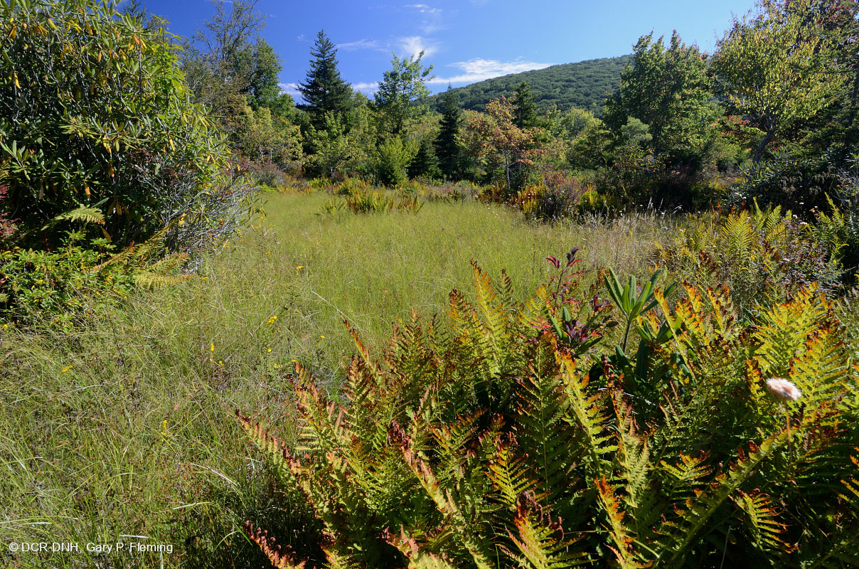 فتحة عشبية في مستنقع ويلسون كريك السفلي في منتزه غرايسون هايلاندز الحكومي، مقاطعة غرايسون. © DCR-DNH، غاري ب. فليمنج