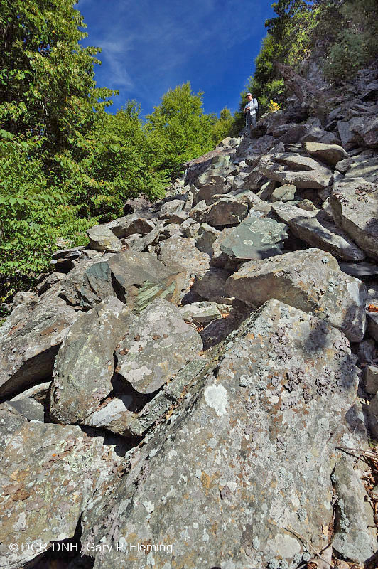 تعد حقول الصخور غير الوعائية من الصخور المتحولة المافيّة نادرة في Virginia. ولأن هذه الصخور أقل مقاومة للعوامل الجوية من الكوارتزيت فإن معظم حقول الصخور المافيكية تحدث في المرتفعات العالية من بلو ريدج، حيث تكون طبقات الميتابازالت أكثر سمكاً والضغوط المناخية أكبر. بالقرب من منحدرات فرانكلين، مقاطعة بيج، حديقة شيناندواه الوطنية © DCR-DNH، غاري ب. فليمنج