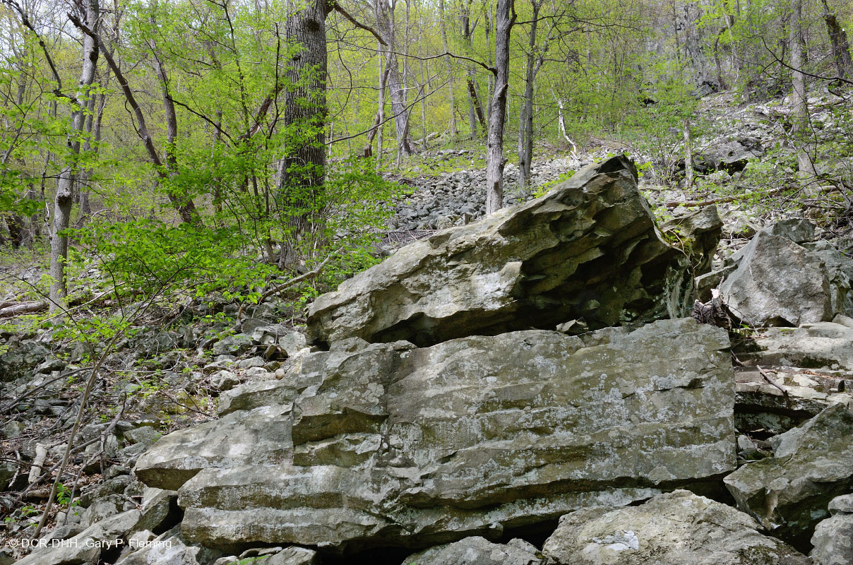 غابة صخرية واسعة غنية بجبل الأبلاش المركزي على تلال ميتاباسالت في شمال بلو ريدج. الجهة الغربية من سلالم الشياطين الصغار، مقاطعة Rappahannock، منتزه Shenandoah الوطني. © DCR-DNH، غاري ب. فليمنج