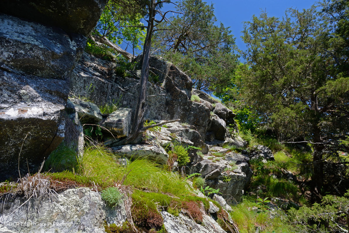 نتوءات أمفيبوليتية، وأشجار الأرز الأحمر الشرقية المتقزمة (Juniperus virginiana)، والنباتات العشبية الليثوفية في الأراضي القاحلة المافية/الجيرية في وسط جبال الأبلاش على الجانب الجنوبي الشرقي من جبل شوغرلوف، وهو سفح تل بلو ريدج في مقاطعة Nelson.