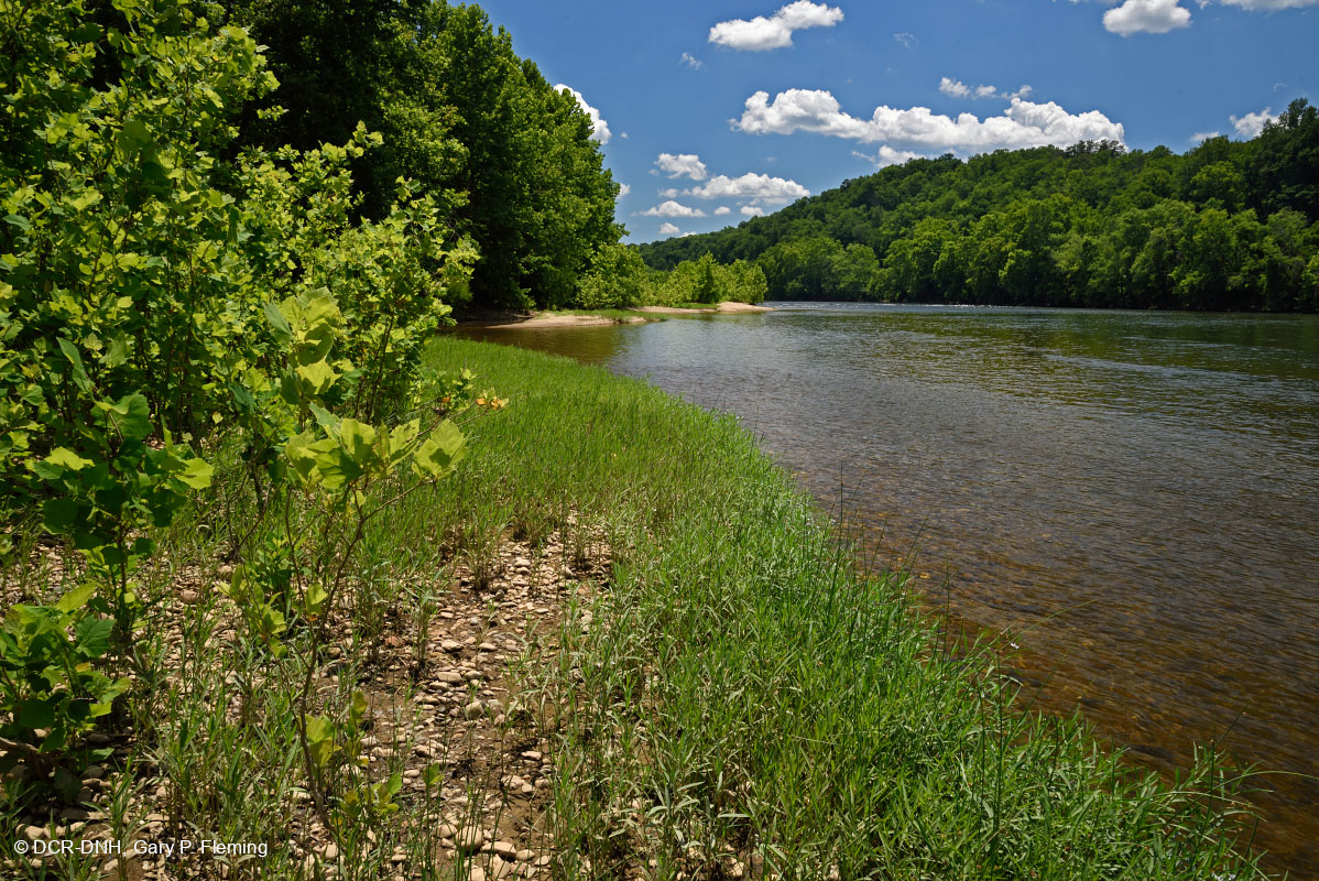 ) ناشئ على شريط إسكافي مكشوف حديثاً على حافة نهر جيمس في متنزه ولاية جيمس ريفر، مقاطعة Buckingham. © DCR-DNH، غاري ب. فليمنج