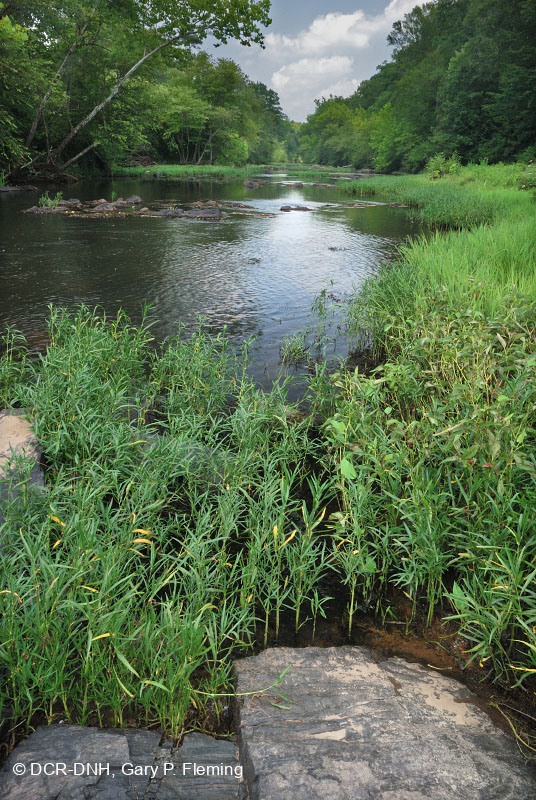 ) على طول الشواطئ الصخرية لنهر Nottoway في منطقة الخريف، شمال مقاطعات Purdy وSussex وGreensville. © DCR-DNH، غاري ب. فليمنج