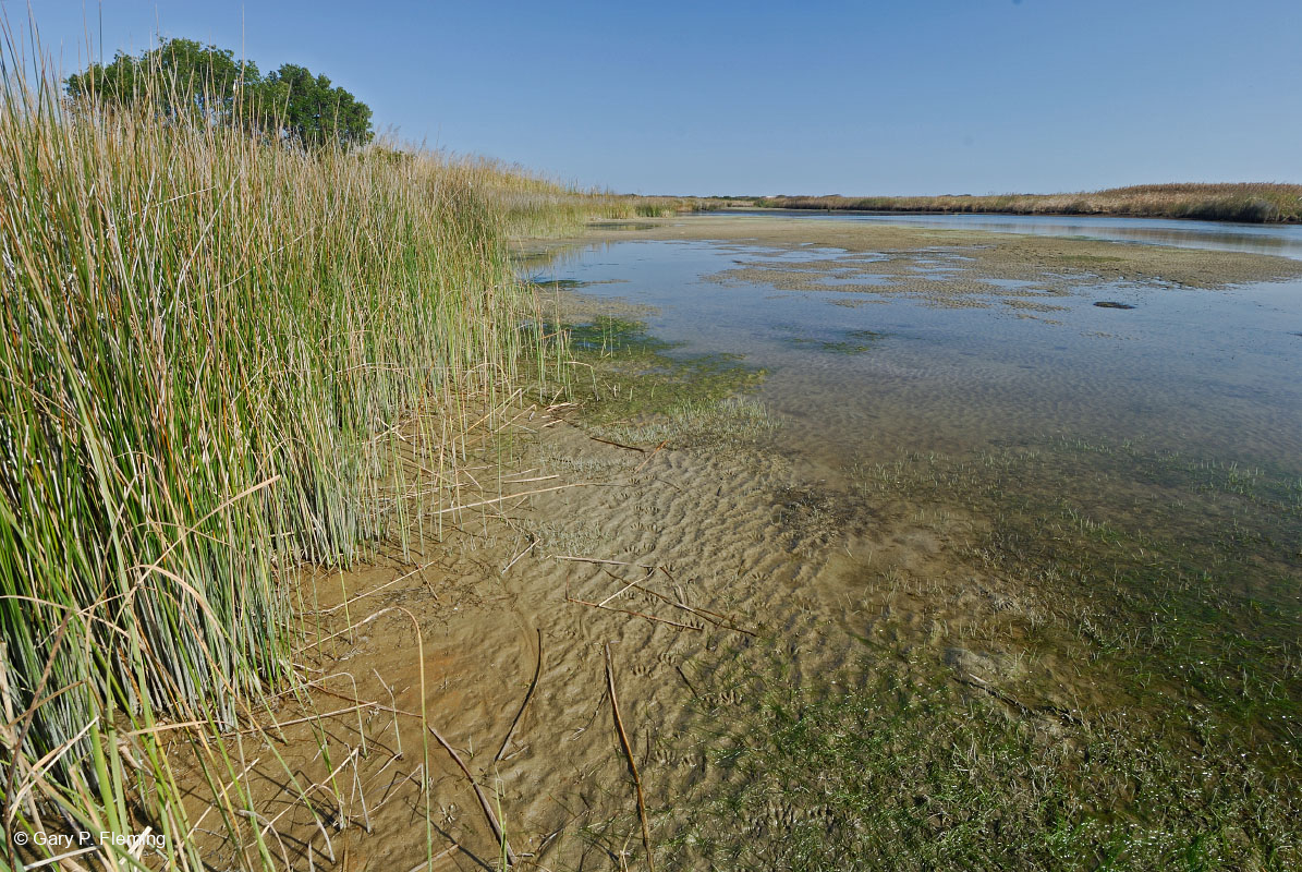 الطمي المكشوف والمستنقعات المحيطة بالرياح والمد والجزر في مدخل على الشاطئ الشرقي لخليج باك في مدينة Virginia Beach. محمية باك باي الوطنية للحياة البرية. © غاري بي فليمينغ