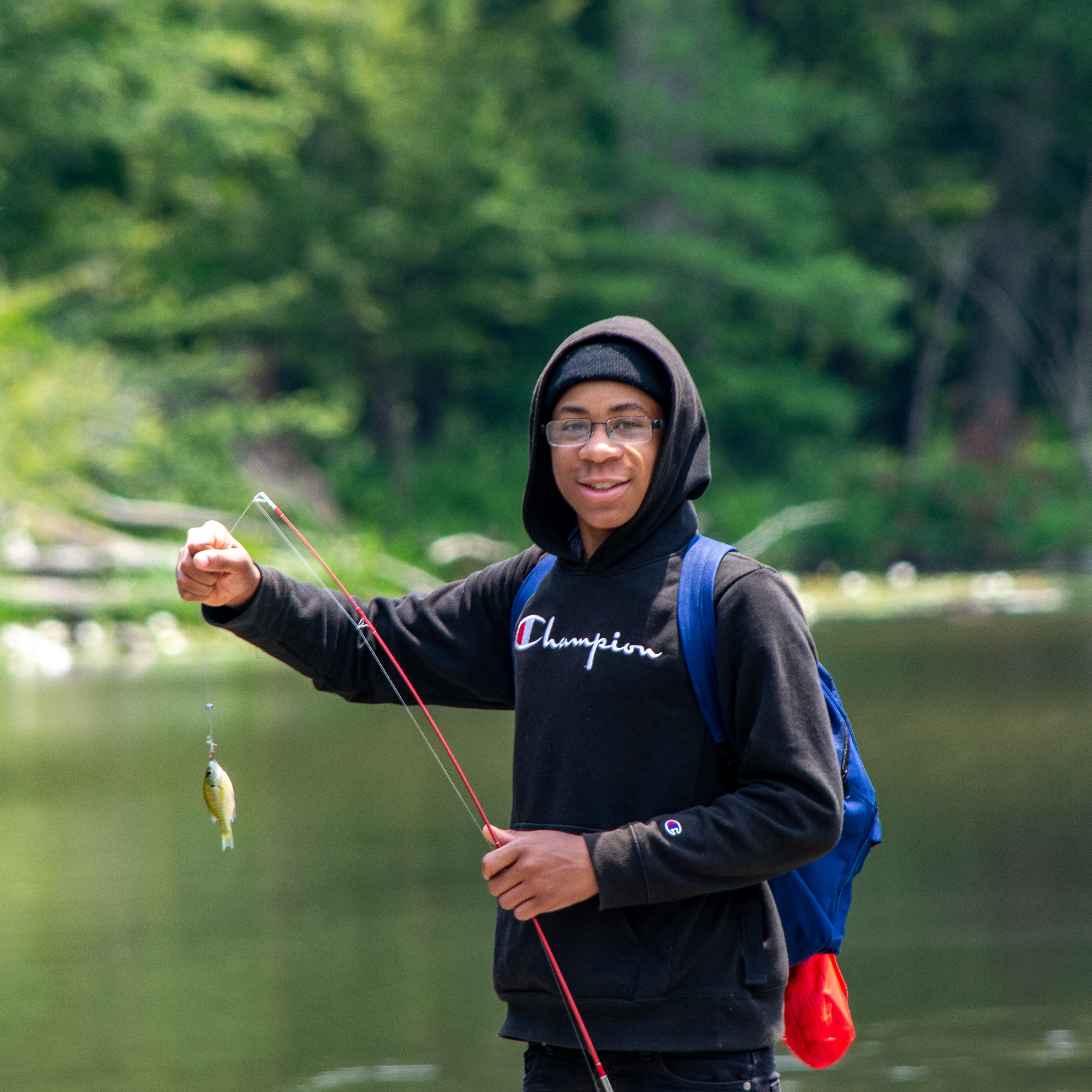 (المحررون: اتبع هذا الرابط لتحميل صورة. تعليق على الصورة: السمك على! يستمتع المخيمون الصيفيون في متنزهات مدينة ريتشموند سيتي والمتنزهات والمرافق المجتمعية بالمخيم الصيفي في مدينة ريتشموند سيتي بقضاء بعض الوقت في الصيد في متنزه بوكاهونتاس الحكومي من باب المجاملة من مؤسسة فيرجينيا للأماكن الخارجية "احصل على الهواء الطلق" منحة التي مولت برامج في جميع أنحاء وسط فرجينيا هذا الصيف).