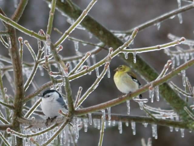 (المحررون: اتبع هذا الرابط لتحميل صورة. تعليق على الصورة: طيور على شجرة جليدية في حديقة ولاية فرجينيا)