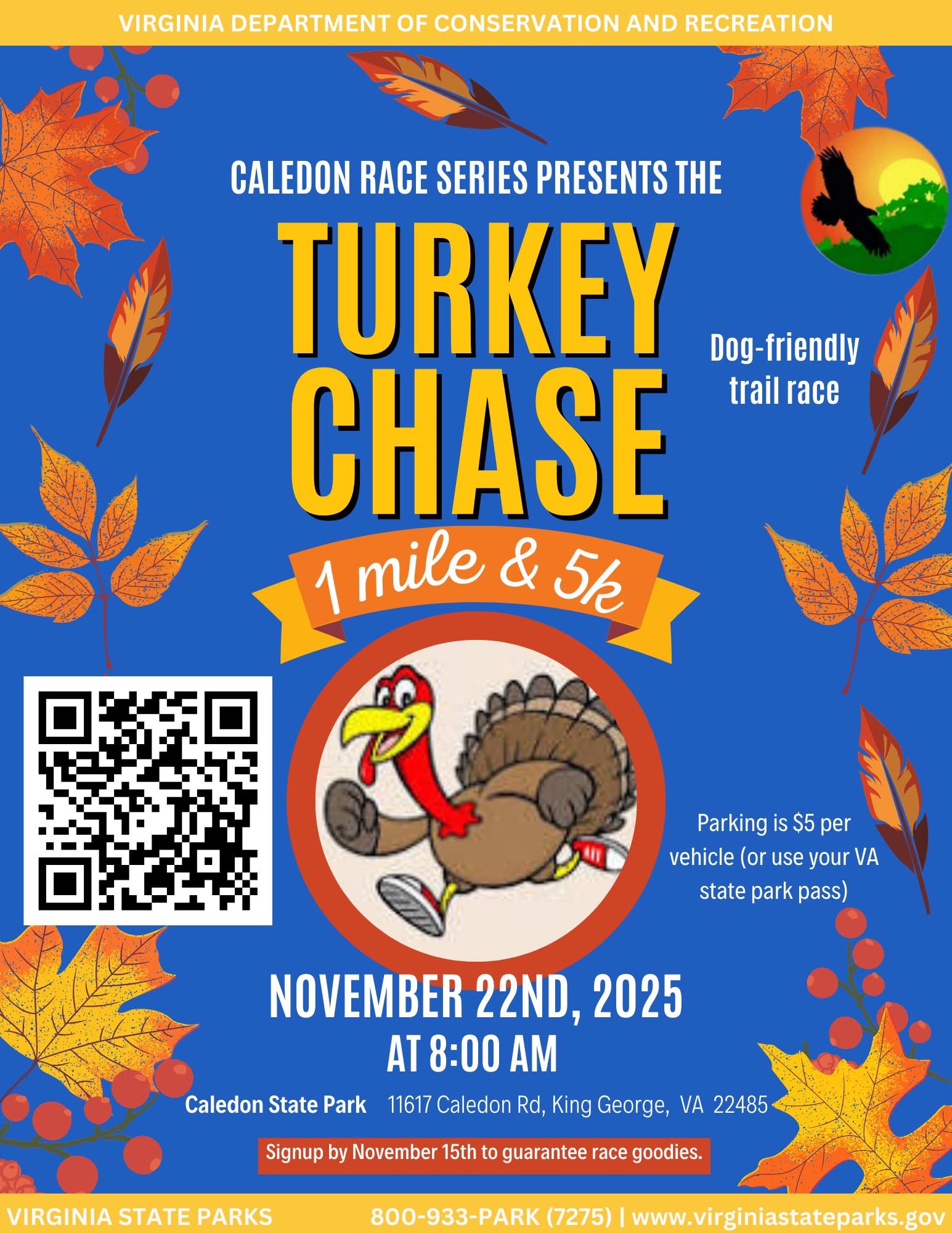 Register here: https://runsignup.com/Race/VA/KingGeorge/TurkeyChaseCaledon